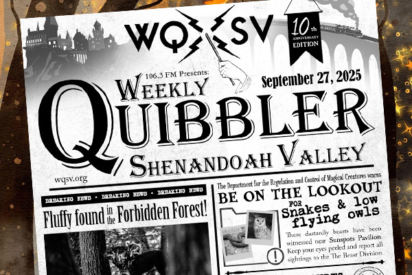 Witches and wizards descended on Staunton this past weekend for Queen City Mischief and Magic. WQSV was proud to be a part of the action by creating the Weekly Quibbler. Printed copies of the magical newspaper were found downtown, but you can read the 2025 issue here.